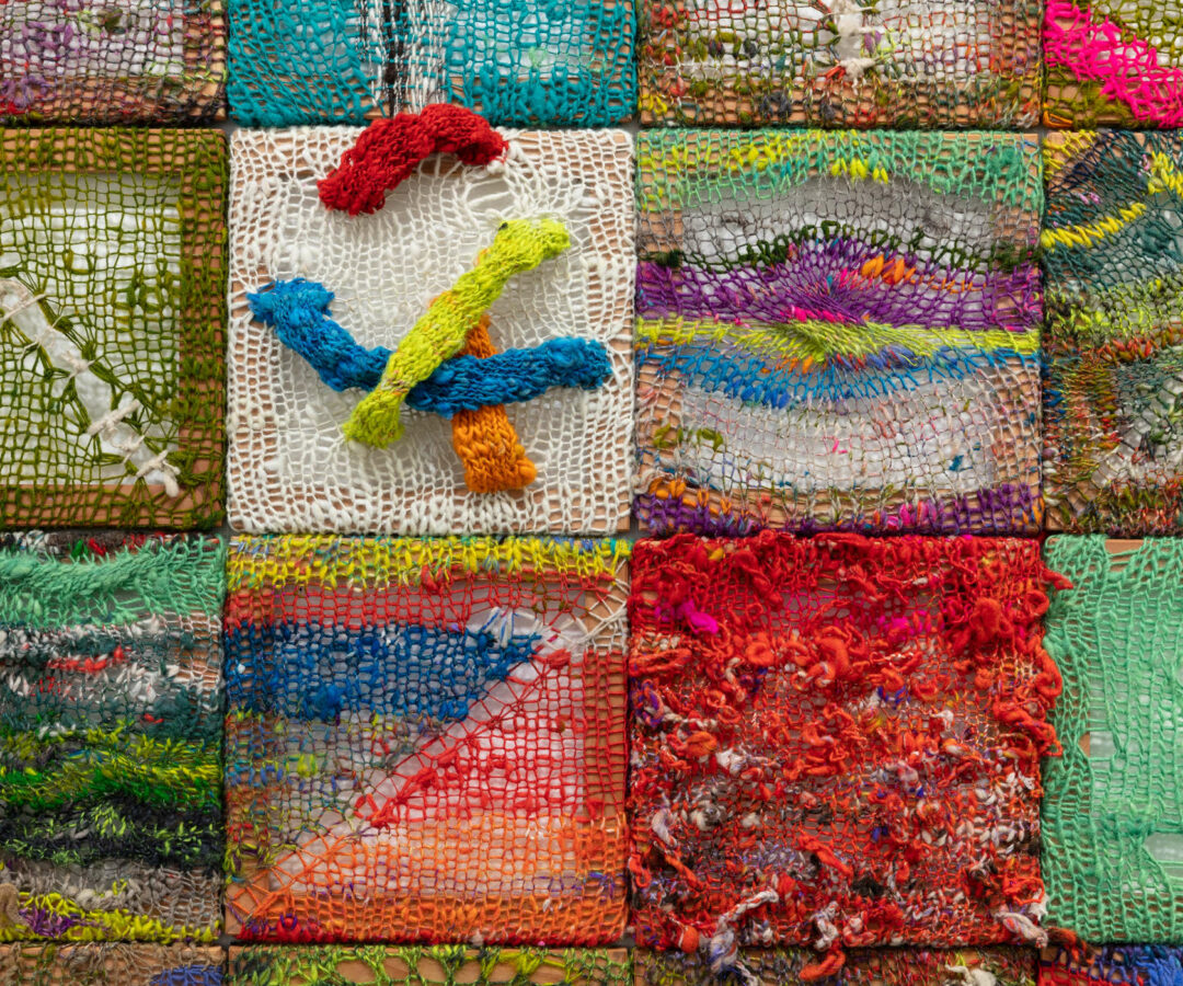 Oftentimes, the stitches I use are almost unrecognizable at the scale I work in. It’s like you have this microscope, and you’re kind of zooming in. Then there are areas where you can see the knitting has actually been done on a much smaller scale. So, it creates another tension in the work. In some places, everything around it is pulled in, like there’s a black hole. It’s like the density or the mass of it is pulling all the stuff in.